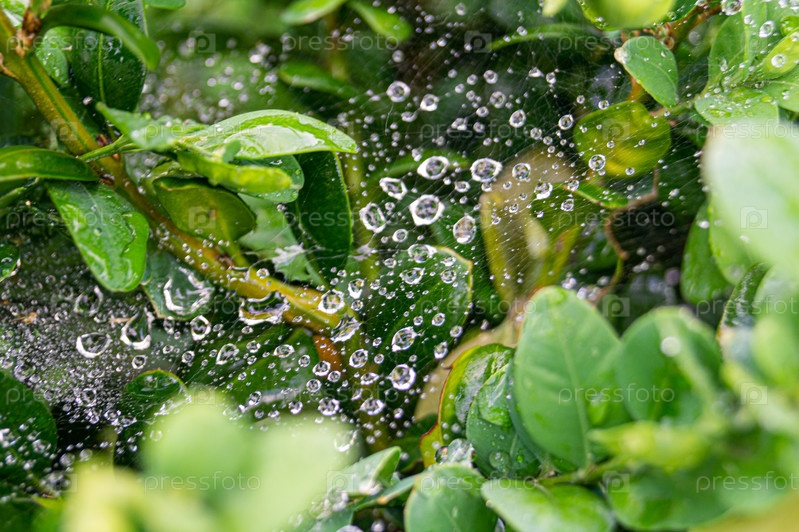 Паутина в каплях дождя