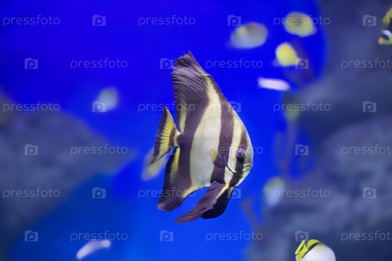 Тропическая рыба-бабочка на синем фоне