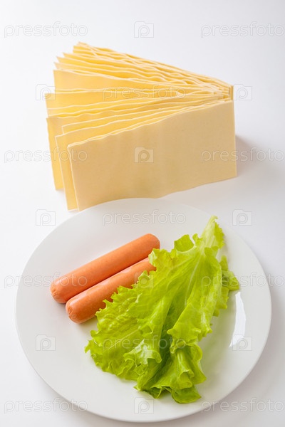 Сэндвич из сырых листьев лазаньи, салата и сосисок. Итальянская еда