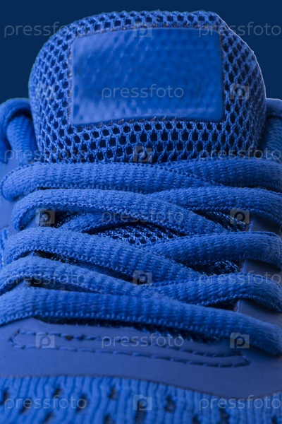 Вертикальный фрагмент синих кроссовок крупным планом