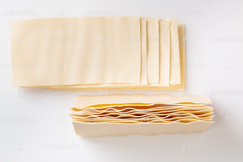 Сырая лазанья. Листы сухого теста для лазаньи на белом фоне