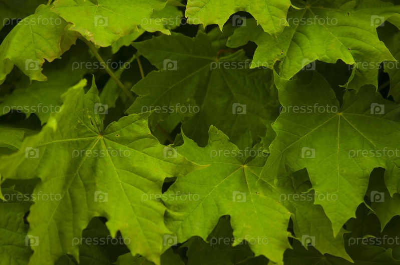 Зеленый пышный естественный фон листьев платана. Кленовые листья кадр плоский лежал. Красивая текстура садовой листвы или узор листьев, вид сверху