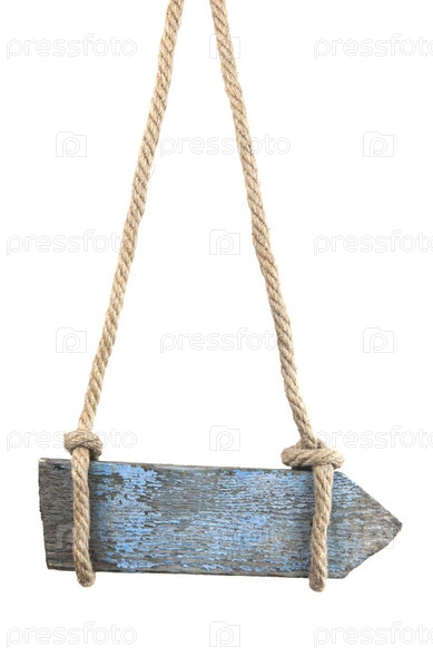 Пустой деревянный знак с скоком для повешения на белом фоне