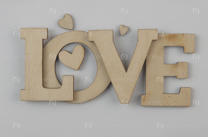 Деревянные слова любовь на белом фоне