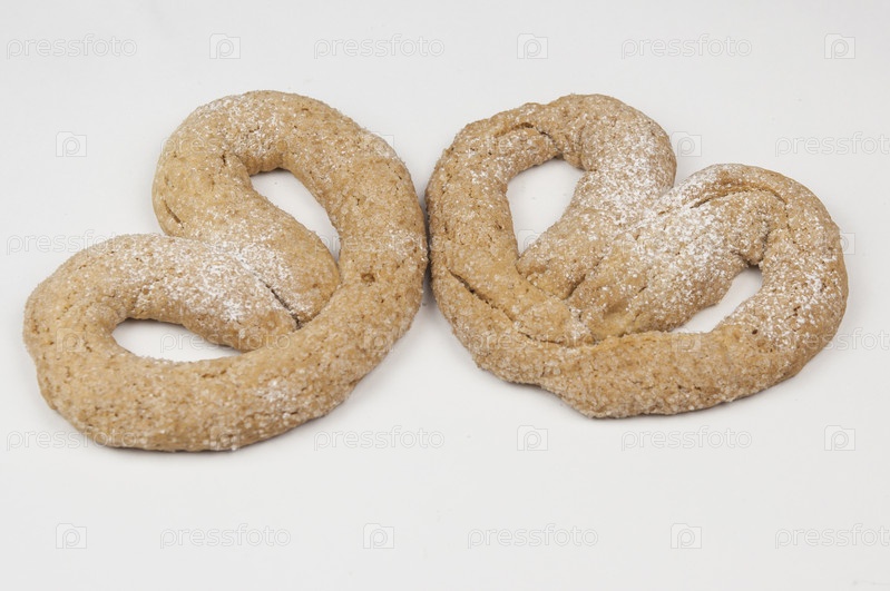 Пара аппетитных крендельков на белом фоне