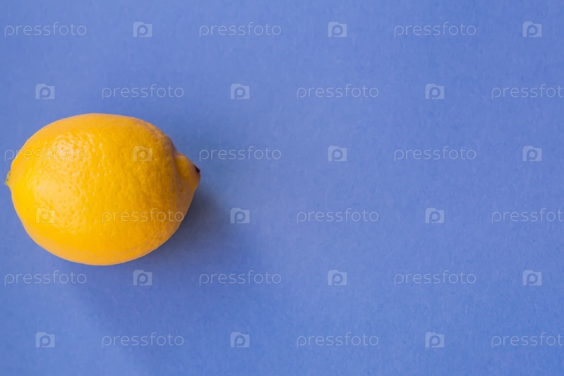 Вид сверху на свежий желтый лимон на синем фоне