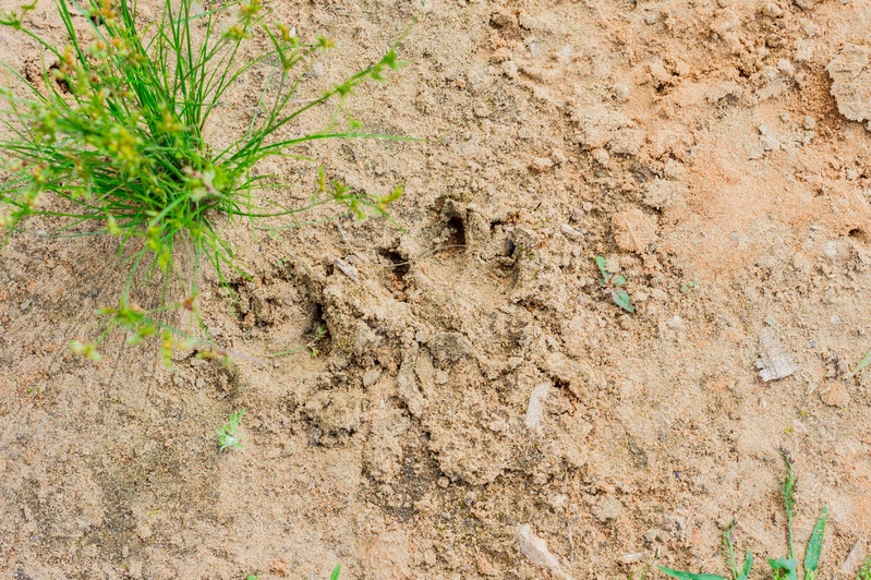 След собаки на сухой земле, след собаки