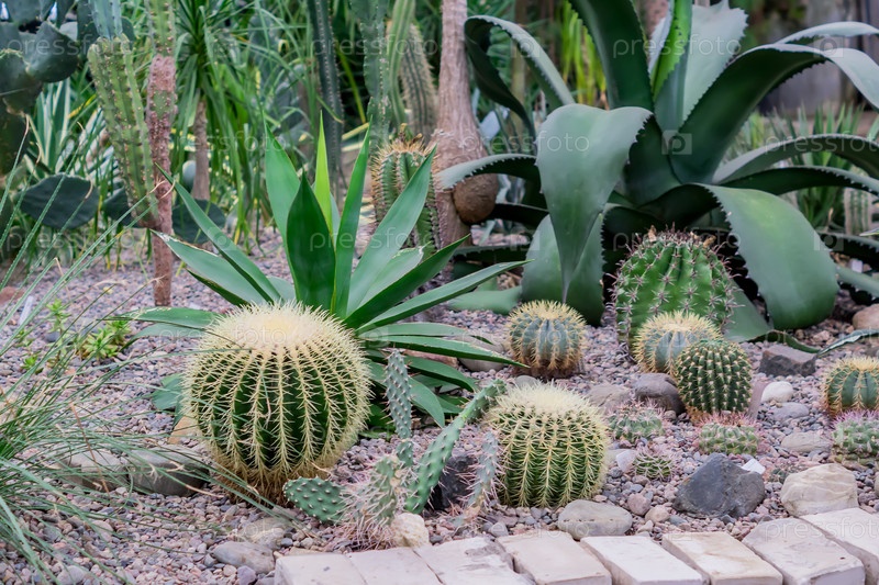 Различные кактусы и суккуленты в теплице