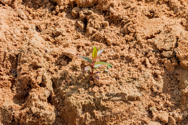 Растение прорастает в песке. Рассадный песок