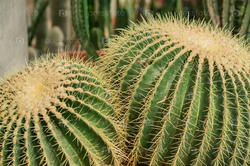 Кактусы в форме шара в ботаническом саду