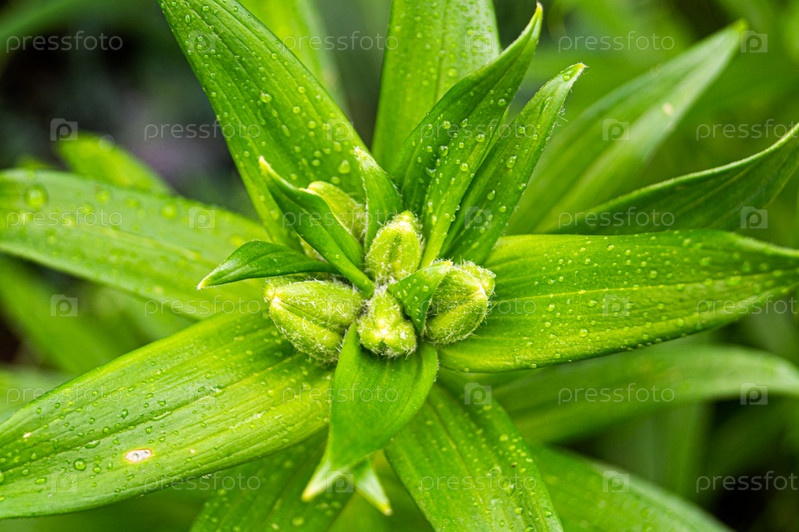 Зеленые листья в каплях дождя