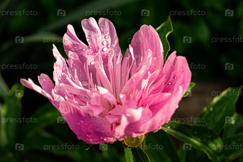 Розовый пион в каплях воды
