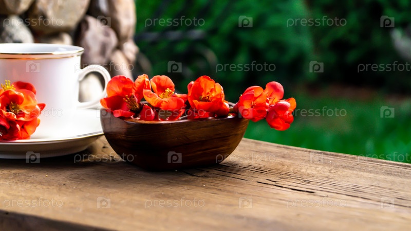 Чай с красными цветками айвы