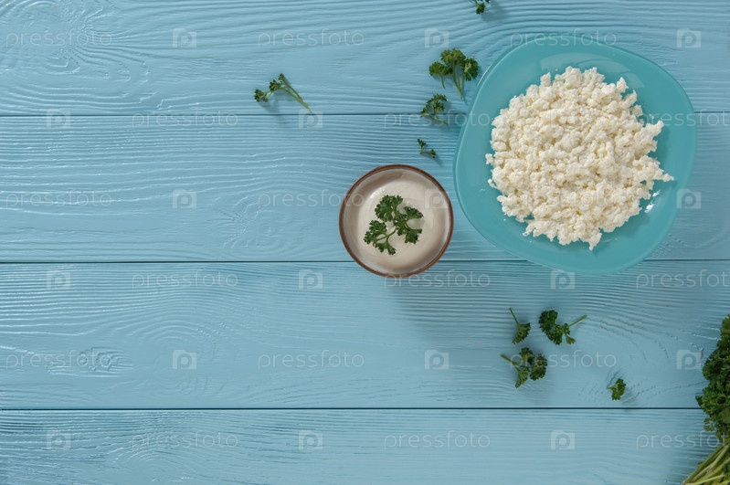 Молочные продукты на синем фоне