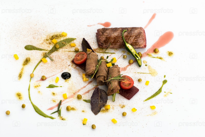 Декоративно украшенная еда на белом