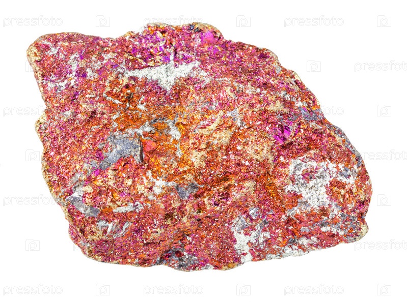 Неполированная красная порода халькопирит, изолированная на белом