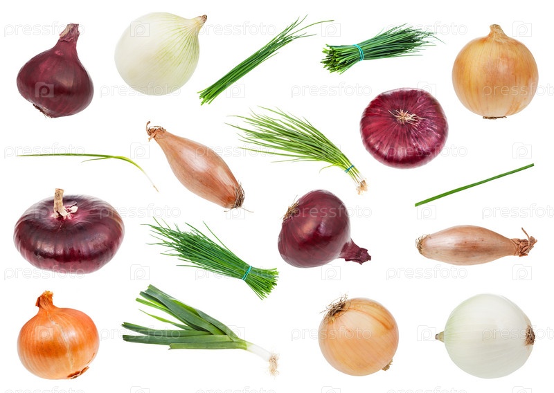 Набор различных луковых трав и изолированных овощей