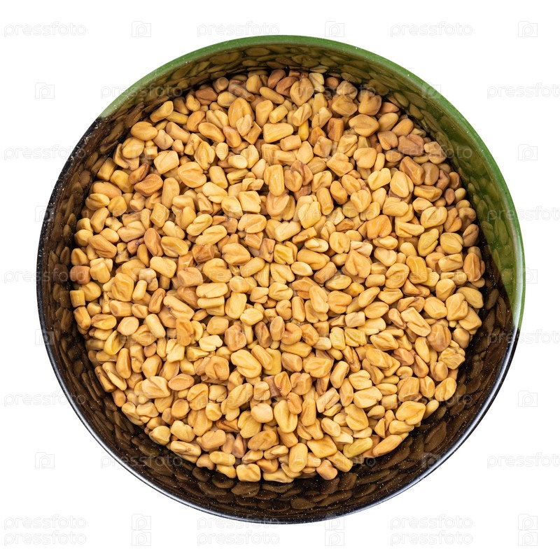 Целые семена пажитника в круглой миске изолированы
