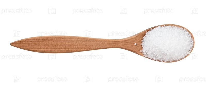 Вид сверху на кристаллическую лимонную кислоту в деревянной ложке