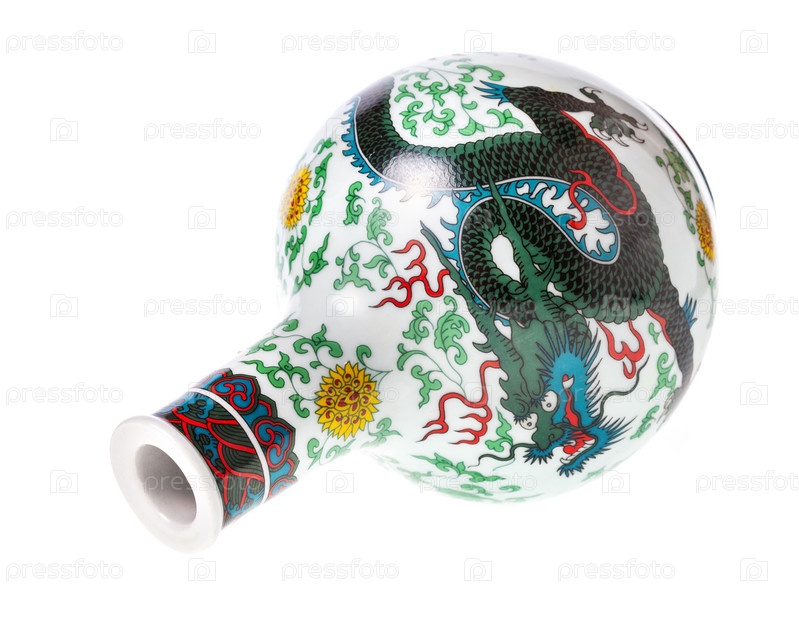 Опрокинутая пустая китайская керамическая бутылка байцзю