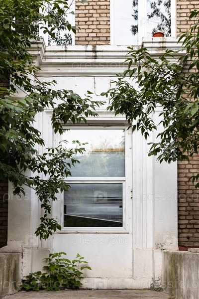 Заброшенная закрытая дверь дома со стеклянными панелями