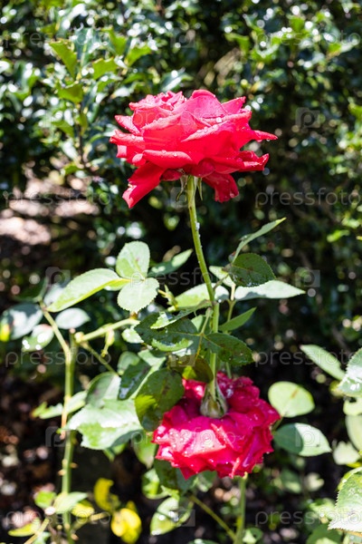 Натуральные мокрые цветы розы в домашнем саду крупным планом