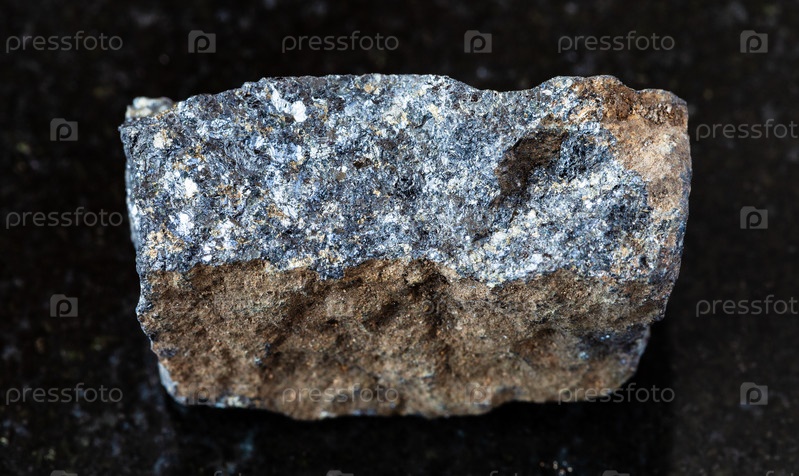 Грубая цинковая руда (сфалерит) скала на черном