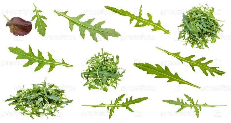 Набор листьев рукколы (ракеты, эрука) изолирован