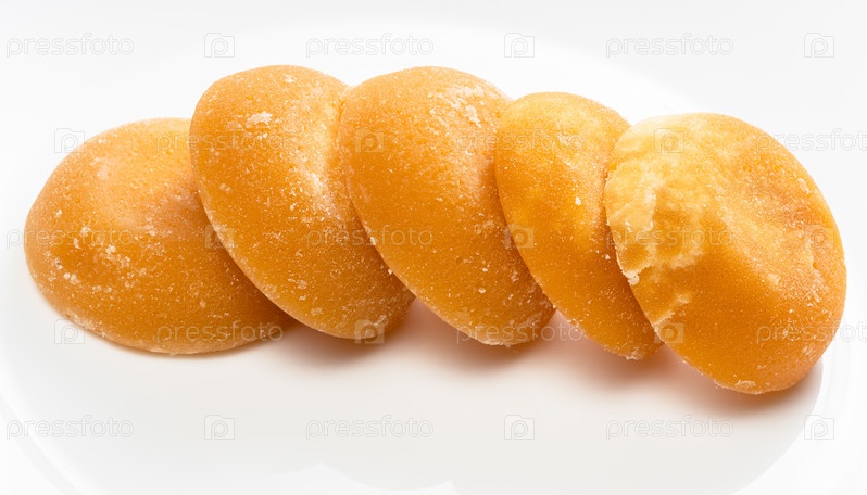 Несколько целых круглых кусочков пальмового сахара на сером