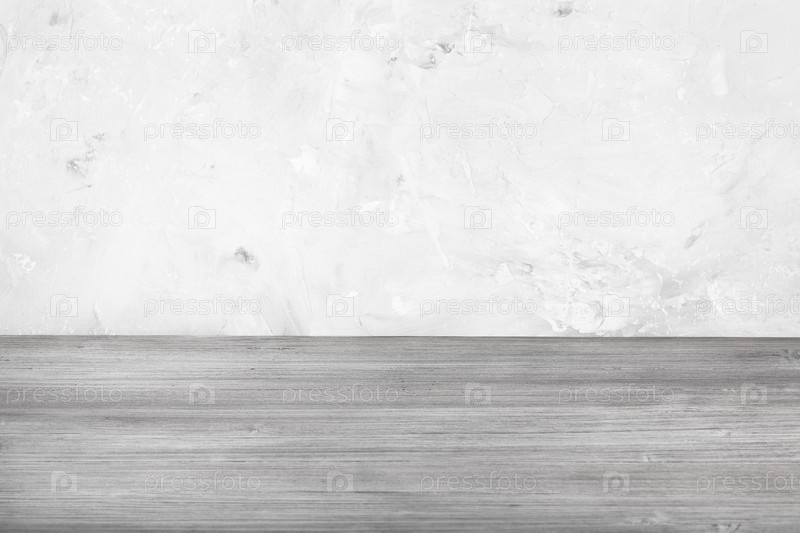 Серый деревянный пол и серая бетонная стена