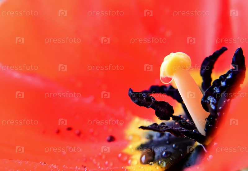 Красный и оранжевый цветок тюльпана внутри крупным планом