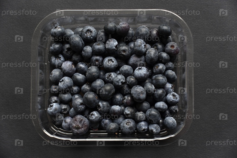 Свежий сочный черника Vaccinium myrtillus в контейнере на чёрном фоне