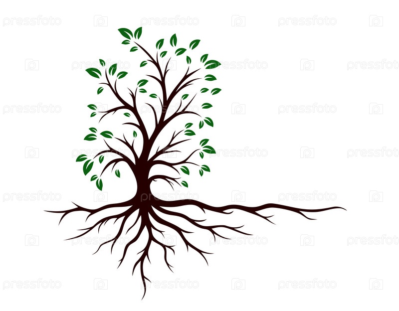 Символ зеленого дерева с корнями