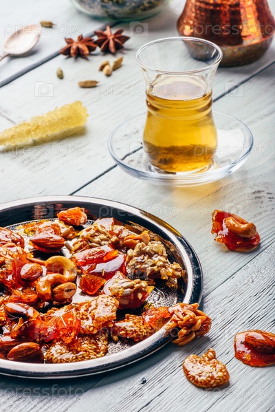 Чай в армуду с восточными деликатесами