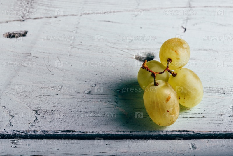Спелый зеленый виноград на деревянном фоне