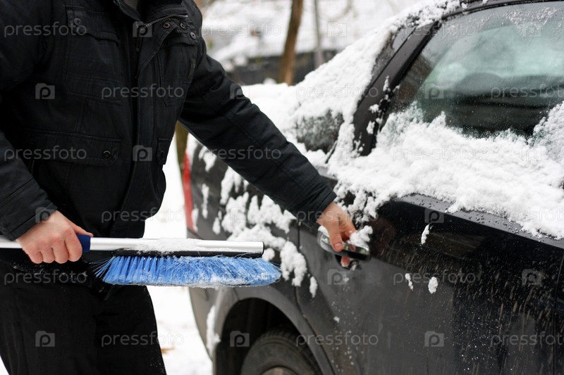 Человек, который чистит машину от снега