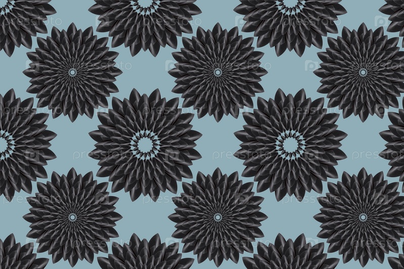 Абстрактный бесшовный узор, элемент взят с реальной фотографии. Орнамент цветной, состоит из маленьких садовых лопат в форме цветка на сером фоне