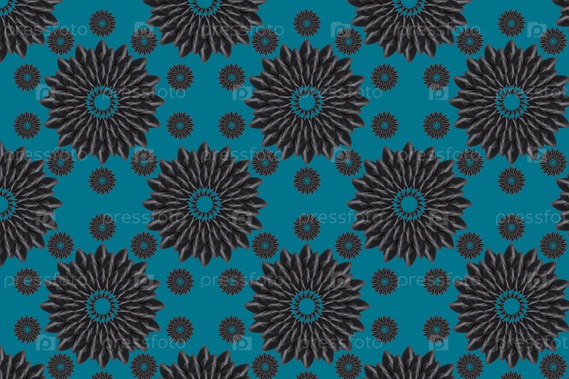 Абстрактный бесшовный узор, элемент взят с реальной фотографии. Орнамент цветной, состоит из маленьких садовых лопат в форме цветка на синем фоне