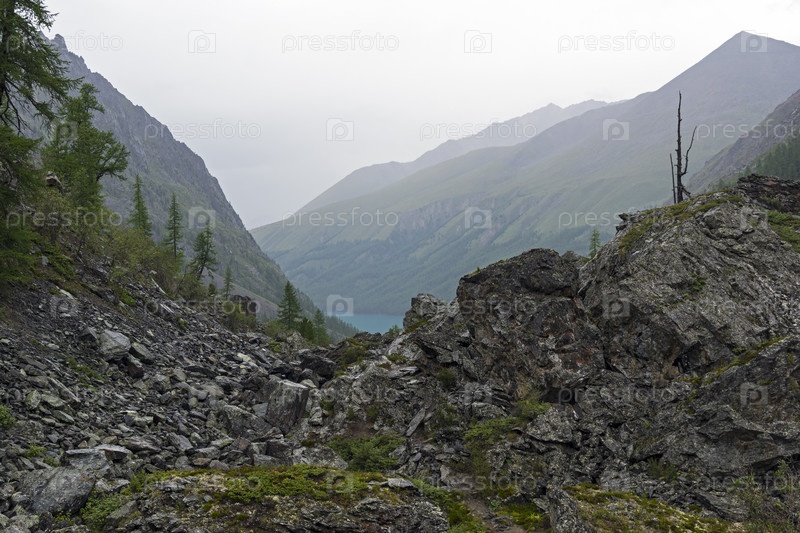 Долина реки Шавла между Верхним и нижним Шавлинскими озерами. Сама река уходит в этом месте под землю. Август, Горный Алтай