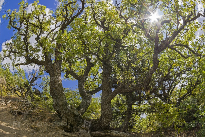 Дуб в лесу на горном склоне. Крым