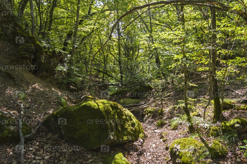 Овраг в горном лесу. Крым, солнечный день в конце сентября