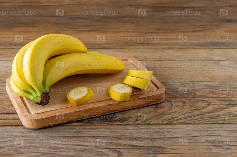 Спелые бананы на деревянном фоне. Вкусные полезные тропические фрукты