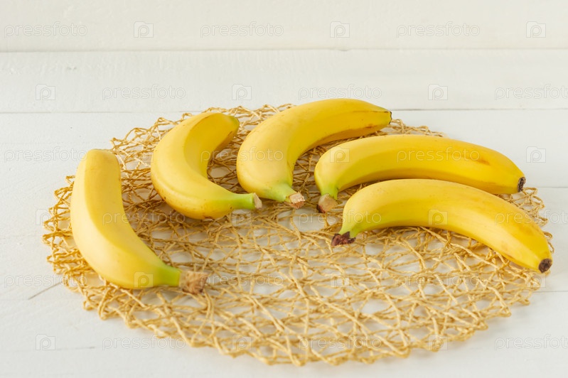 Спелые бананы на деревянном фоне. Вкусные полезные тропические фрукты