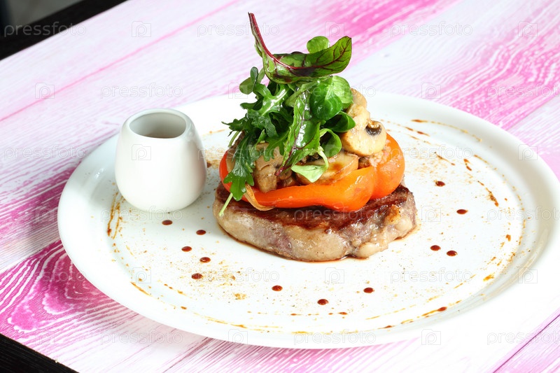 Стейк рибай с болгарским перцем,грибами и зеленью