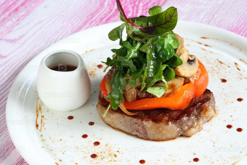 Стейк рибай с болгарским перцем,грибами и зеленью