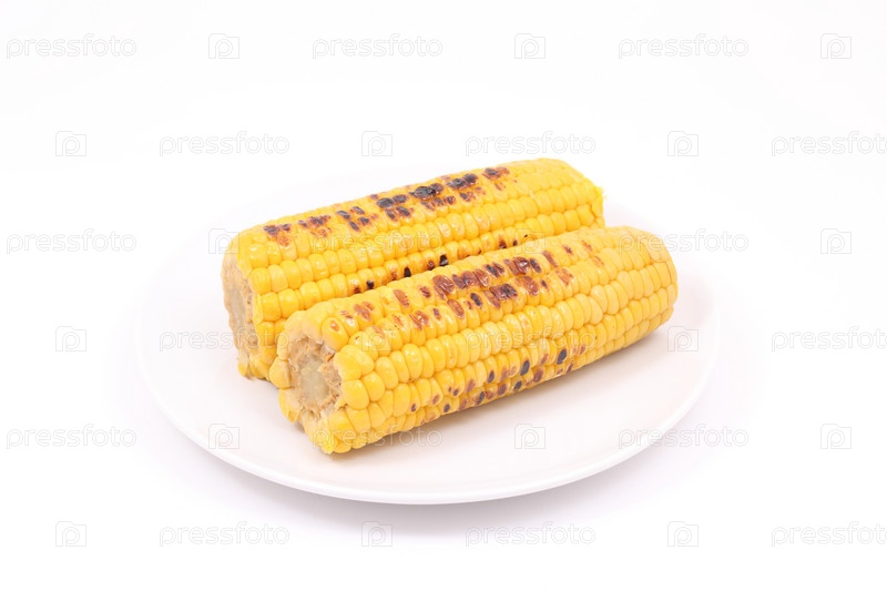 Жареная кукуруза на белом фоне