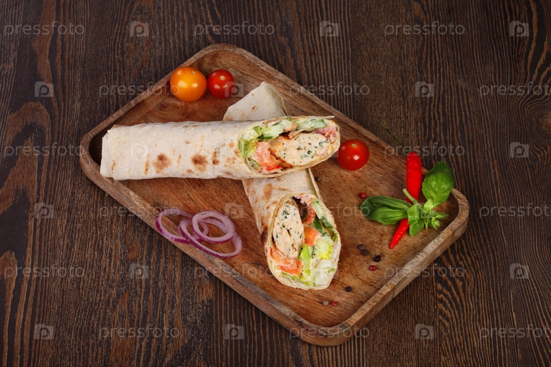 Шаурма на деревянном подносе