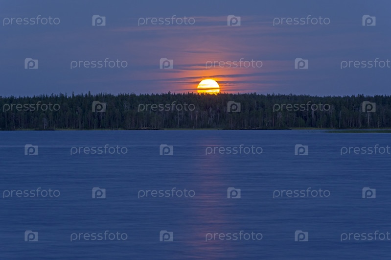 Полная луна над берегом реки. Плес на реке Писта, северная Карелия, август