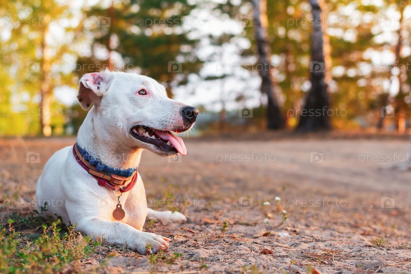 Портрет собаки Джека Рассела Терьера без одной ноги, лежащей на земле в лесу
