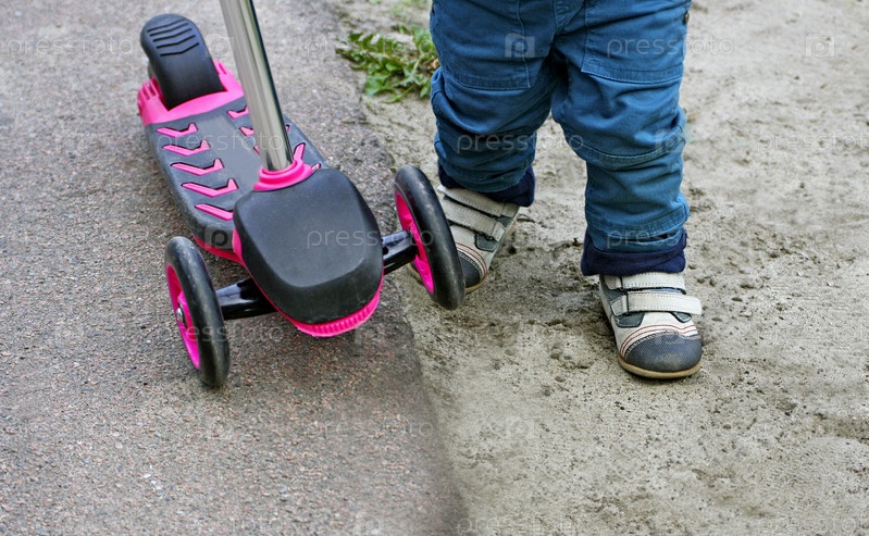 Ребенок на самокате Kick